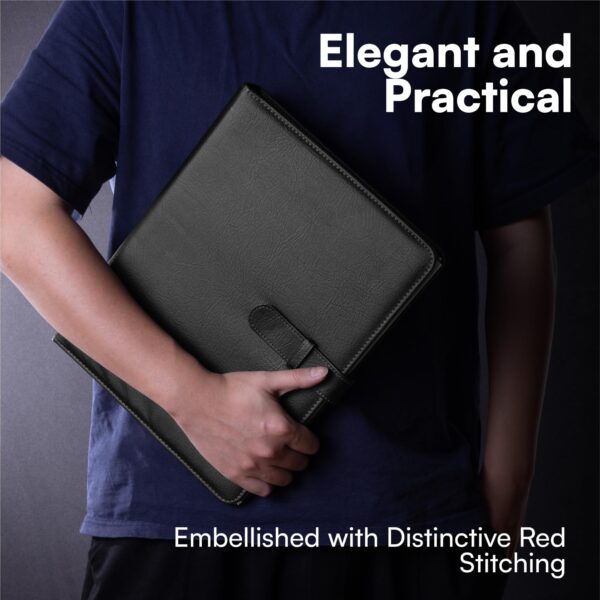 - Timeless and Classic Design: Constructed with premium faux leather, this document folder is a reliable business accessory It features a sleek black body with accented red stitching for a sophisticated look