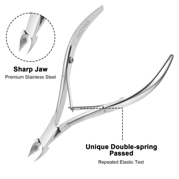 - The cuticle nipper is made of durable stainless steel and features an ergonomic handle design and a double spring design for added flexibility and durability. The protective plastic tip helps prevent accidental damage or injury.