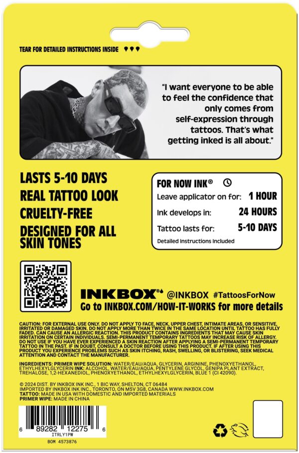 Inkbox Temporary Tattoos, I Love You, Water-Resistant, Perfect for Any Occasion, Black, 1 Pack are the ultimate self-expression accessory for everyone! Perfect to wow for a big event, festival, or everyday to simply change up your look. Our cruelty-free, safety-tested ink lasts 1-2 weeks on your skin for commitment-free fun. Did we mention they’re super realistic and easy to apply? In just three simple steps you have an authentic-looking, water-resistant tattoo, that you can shower, sweat, and go about your day with. Your tattoo gradually fades as your skin naturally exfoliates and regenerates. Our temporary tattoos ensure that you have the tools to express yourself… even if that ‘self’ is ever-changing!
