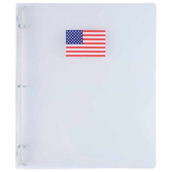 JAM Paper & Envelope American flag clear plastic 3 ring binder features a glass twill finish and a conveniently sized, sleek design. Made to fit easily in a backpack or your workplace shelves, these folders are perfect for keeping your papers and files organized at school or at the office. Their lightweight yet durable material also makes them ideal for protecting your files as you transport them from classroom, to boardroom, and beyond. Each binder features a pocket and business card slot on the inside left cover for extra storage and organize convenience.