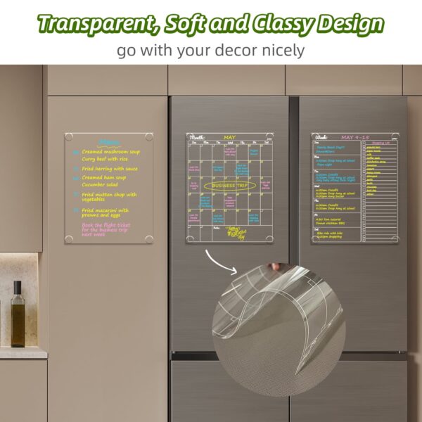 JJPRO Non-Magnetic Dry Erase Calendar for Fridge-Reusable Monthly&Weekly Planning Board and Blank Clear Board Bundle for All Smooth Surfaces. Clear Reusable Board Sticks to Fridge,Wall,Door&Glass