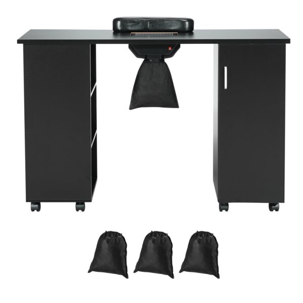 KFFKFF Manicure Table Nail Desk for Nail Tech, Nail Table Beauty Salon Tech Station, Moveable Nail Tech Desk with 8 Wheels (4 Lockable), 3 Dust Bag & Wrist Rest, MDF Nail Art Workstation