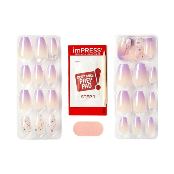 KISS imPRESS No Glue Needed Press On Nails, Design, All I Want, Purple, Medium Coffin, 30 Count