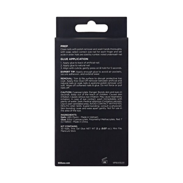 - Nail kit contains 30 fake nails including 12 accent nails, pink gel nail glue 2g (0.07 oz.), manicure stick, & mini nail file