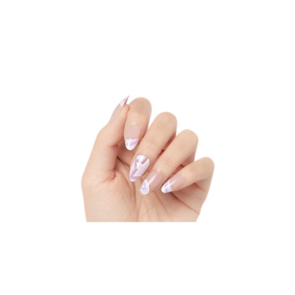 - On-trend glossy purple glue-on fashion nails are medium length & almond shaped