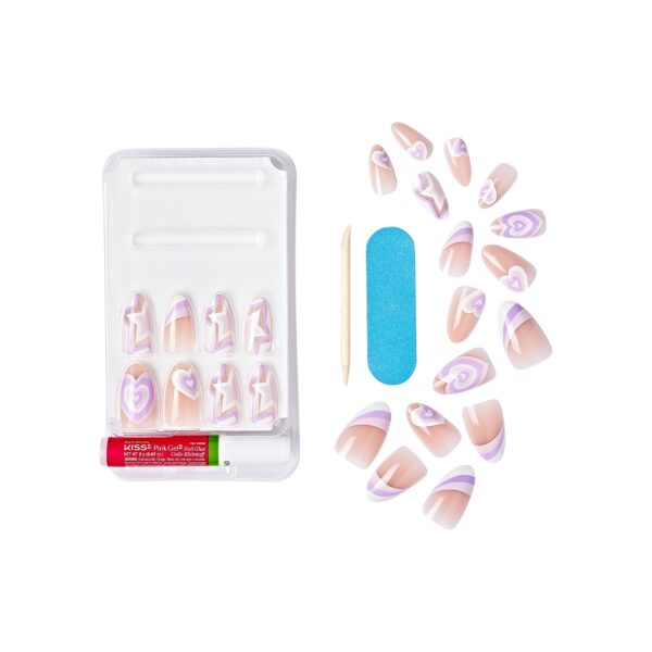 - Complete nail kit includes: 24 Fake Nails, Net Wt. 2 G (0.07 Oz.) Pink Gel Nail Glue, Mini File, & Manicure Stick