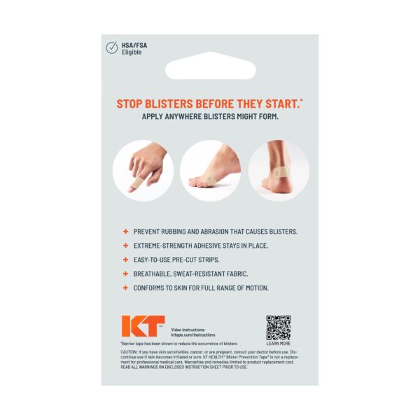 KT Blister Prevention Tape 30 Strips Beige Helps Prevent Blisters, Chafing and Hot Spots Ultra-Durable, Flexible, Breathable, Extreme-Strength Adhesion