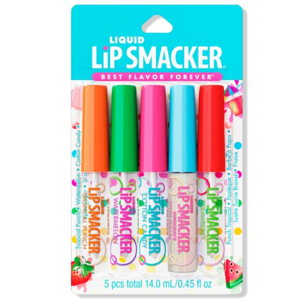 The Lip Smackers 5-Piece Friendship Gloss Party Pack offers ultra-shine and shimmer for your lips. It includes five fun flavors—Tropical Punch, Strawberry Sprinkle, Cotton Candy, Spun Sugar, and Strawberry—with three original and two shimmer formulas. Perfect for adding flavor and sparkle, this pack provides everything you need for a fun, glimmering lip experience. Enjoy a brilliant, glossy finish with each swipe for a radiant smile all day long.