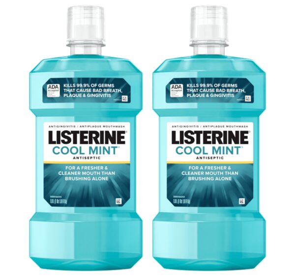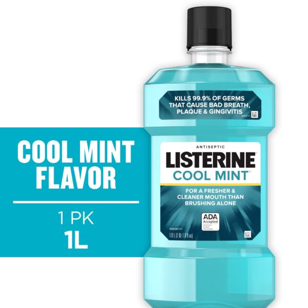 - Listerine Antiseptic Oral Care Mouthwash for bad breath in Cool Mint flavor for a deeper clean