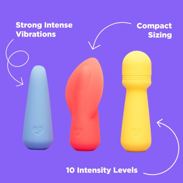 This a great starter kit for someone new to sex toys, as it includes 3 x different vibrators in 3 x different shapes at a great price. The toys are nice and compact, so great for travelling, but the vibrations are extremely powerful. The colours of the toys are nice and bright and the packaging is lovely.