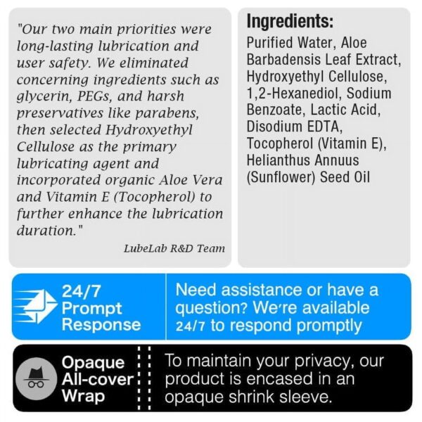 Be the first to review “Lubelab Waterbased Lube 8.3 fl oz. Personal Lubricant w/Aloe & Vitamin E, Free of Paraben&Glycerin&PEGs, pH-Balanced, Natural Smooth Slippery Glide Gel for Couples, Men, Women” Cancel reply