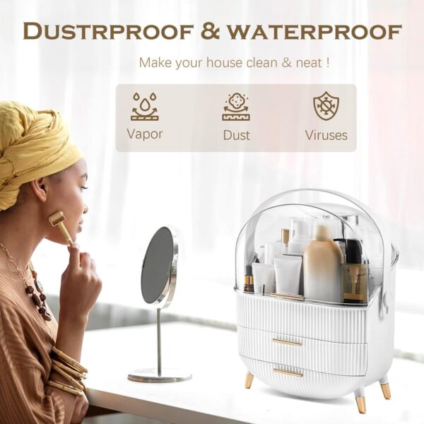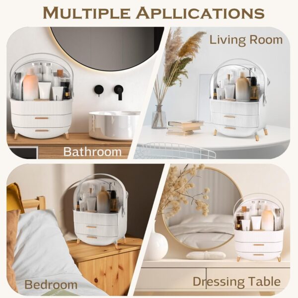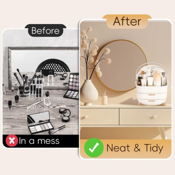 - [Dustproof and Waterproof] The large opening lid design ensures that your cosmetics stay protected from dust and water. This helps in keeping your makeup desk or bathroom countertop tidy.
