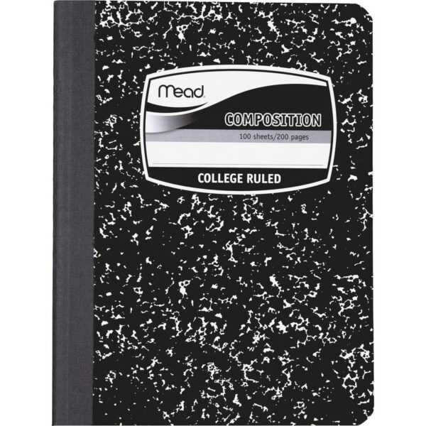 Mead Composition Book – Sewn – 7 1/2″ x 9 3/4″ – Black Paper – Black Marble Cover – 12 / Carton. Composition book is an old favorite with college ruling that keeps notes neatly aligned. The inside cover has a preprinted area to fill in a class schedule. Inside back cover features a multiplication table, conversion table and grammar rules for quick reference. Sewn binding is secure and is smooth to eliminate the risk of snagging. Header of the front cover allows you to name or number each one. This book;comp;sqdl;3sbjct;120ct is a great paper & pads notebook item. It is a brand new item that comes to you packed well and ships fast!
