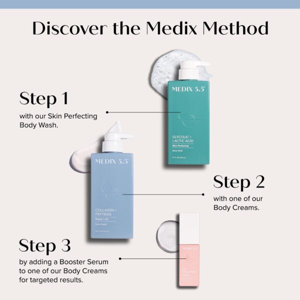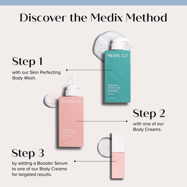 - TREAT YOURSELF – Our Medix 5.5 creams & boosters are designed with your daily skin care routine in mind. Immediately apply Medix 5.5 body creams combined with optional body boosters after a relaxing hot shower or bath to allow powerful active ingredients within formula to absorb deeply into the skin and for the delicious scents to invigorate your senses. Our luxuriously rich creams melt into the skin absorbing quickly, leaving your skin nourished & delectably silky smooth.