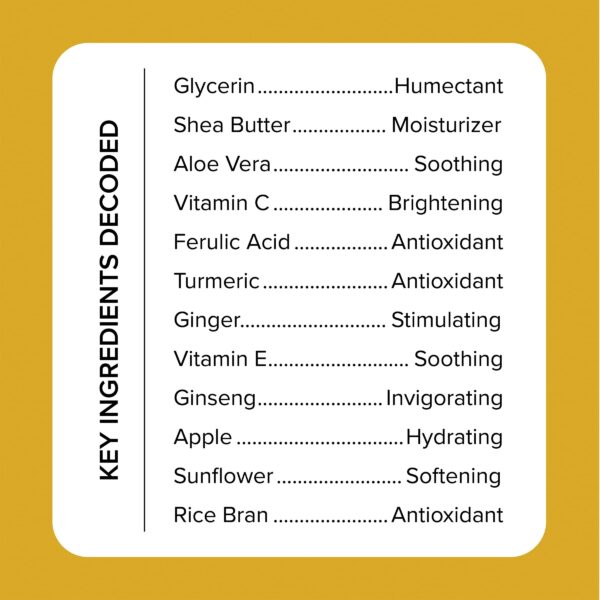 Our advanced formula is packed with other active ingredients such as Ferulic Acid, Green Tea, Vitamin E, Shea Butter, & Aloe Vera that work synergistically to improve the overall health and appearance of your skin to help give your skin a youthful, radiant glow.