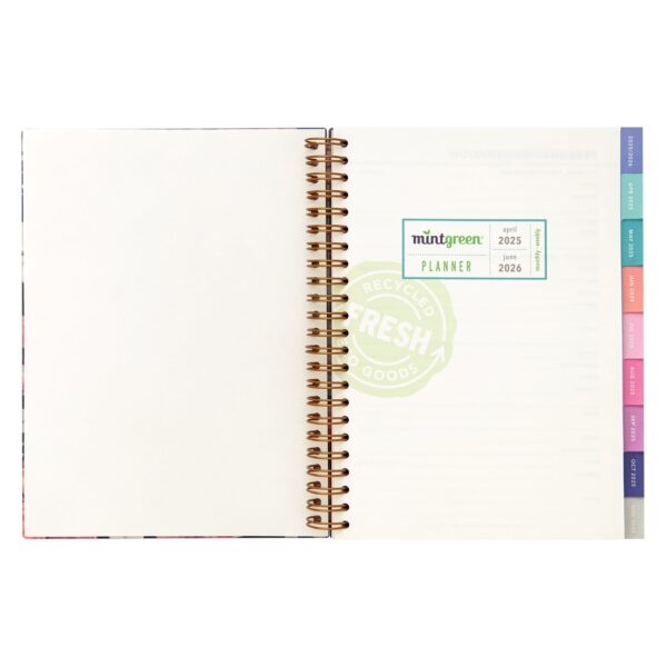 Plan your week, month or year and keep all important activities noted with the Mintgreen Daily/Weekly/Monthly Planner. This planner measures 6.25″ x 8.25″, has a hardcover with foil stamping and spiral binding. The pages are printed with soy-based ink and are made from 60% recycled FSC certified paper, making it eco-friendly. The color-coded pages for each month make it easy to flip to the date you need. There are 112 sheets in this planner. This planner also has space to write important dates like birthdays, contacts, and plenty of room in the back to jot down extra notes. The planner is dated 2025 -2026. Keeping your schedule organized is easy with a Mintgreen Planner!