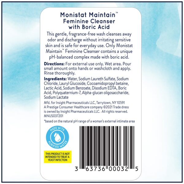 - Contains 1 bottle of Monistat Maintain Feminine Cleanser with Boric Acid, 10 fl oz