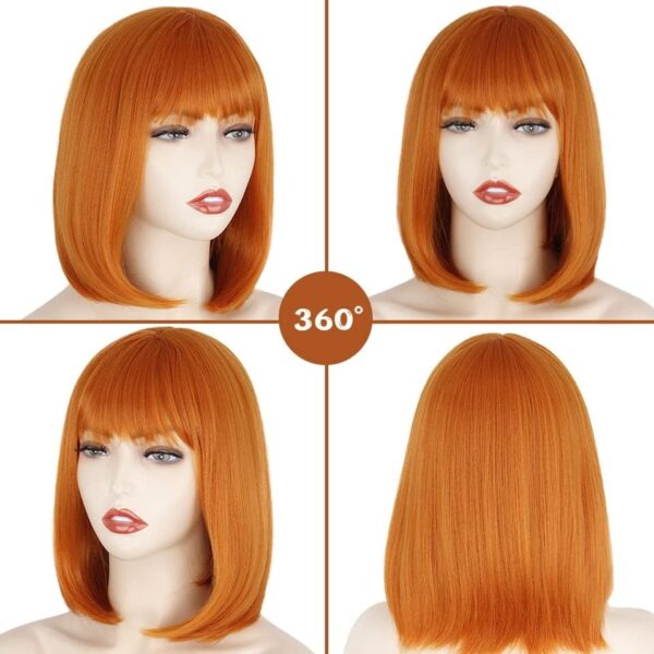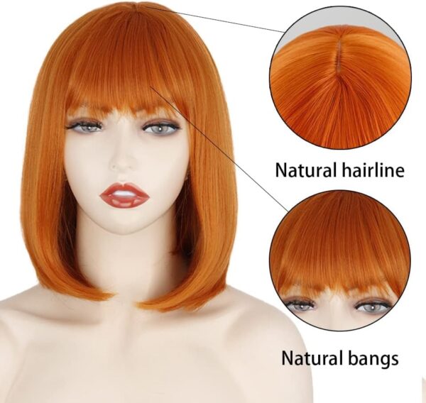 No Author Parrucche Short Bob Wig con frangia per le donne Synthetic Bob Parrucche Arancia Nero