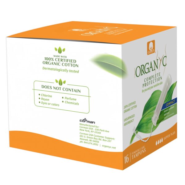 This is the go-to organic tampon i get. The compact size makes it easier for me to carry with me in my little handbag. Also, you don’t mind the “super plus” size for tampons often so Love it.