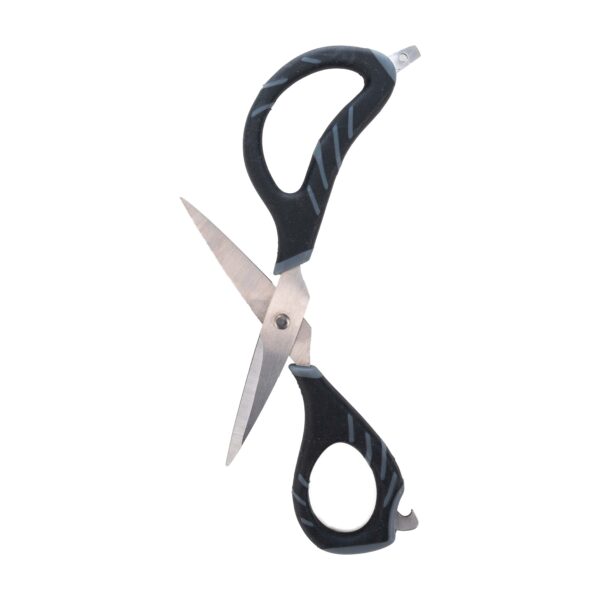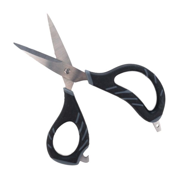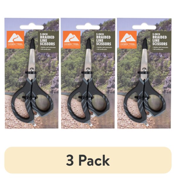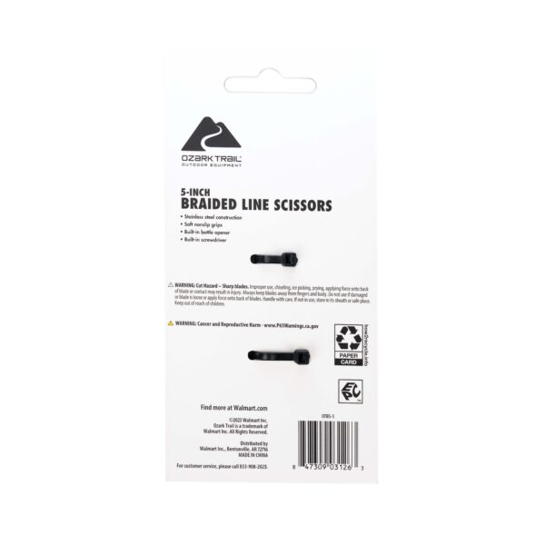 Ozark Trail Braided Fishing Line Scissors are perfect for cutting Braided Fishing Line. Stainless Steel construction with soft nonslip grips. They feature a built in bottle opener and screwdriver for convenient use.