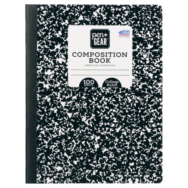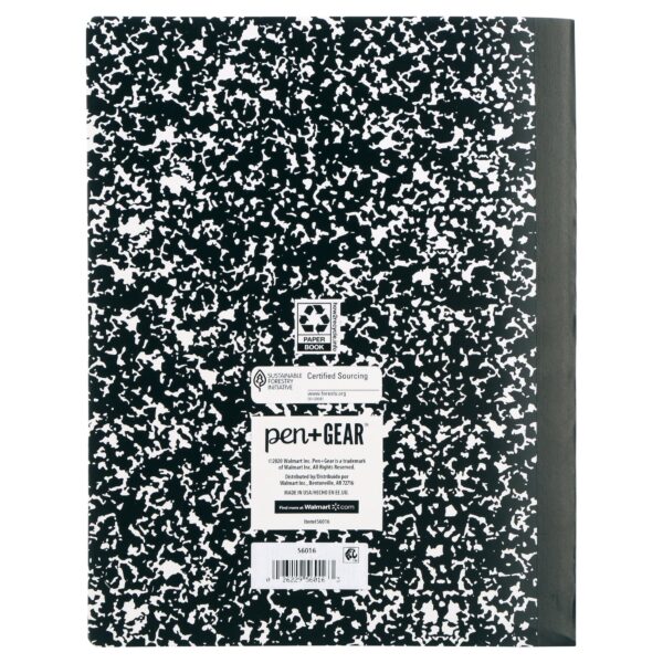 Pen+Gear 20 Pack 80ct Marble Composition Book, 9.75 x 7.5 College Ruled, New. Pen+Gear Composition Books are a fun place to jot down lists, notes or homework. Each composition book features durable front and back covers that are flexible enough to lie flat when writing. These composition notebooks are a compact 7.5″ x 9.75″, so you can easily carry one in your backpack, laptop bag or tote bag. The permanently bound pages keep your writings secure while the sturdy covers help protect the pages from tears and spills. The composition book has 80 college ruled pages to fill with secrets, meeting notes or even shopping lists. This composition book is manufactured with sustainable materials. The high-quality paper used in this notebook has a high brightness, and it originates from certified, sustainably managed forests. It is made in factories that operate only under the highest standards of compliance with social and sustainable practices. Pen+Gear Composition Books are perfect all-purpose notebooks.