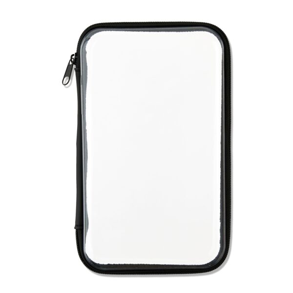 - Clear design with a white zipper