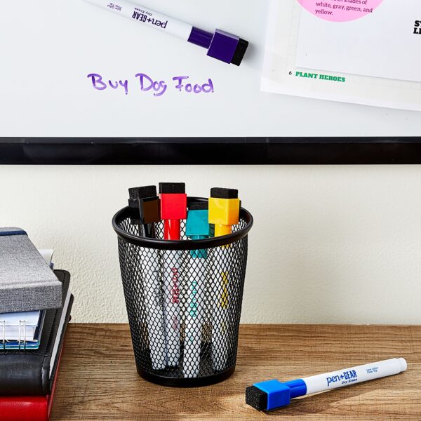 Write temporary notes, reminders, quotes and more with the Pen+Gear Magnetic Dry Erase Markers. This pack comes with six colors, including black, green, blue, red, yellow, and purple. They are low odor and have a fine tip making them perfect for classroom and offices. The markers work on dry erase boards, glass, and nonporous surfaces. They are magnetic, so you can leave them on your whiteboard for easy access and with an attached eraser you can erase and change the writing quickly. The fine tip lets you get the perfect line width every time. Check out other Pen+Gear products like pens, pencils, dry erase boards, paper, notebooks, and more for all your school and office supplies. Whether you’re jotting down a quick note or brainstorming ideas, Pen+Gear Magnetic Dry Erase Markers are endlessly versatile in the office or class.
