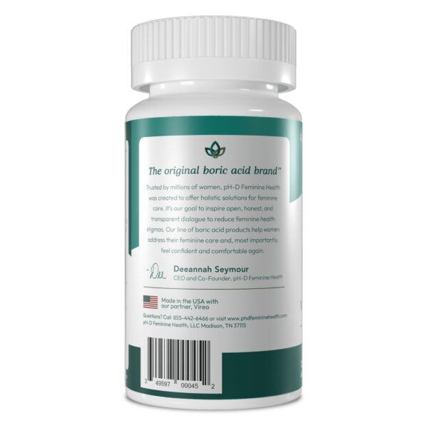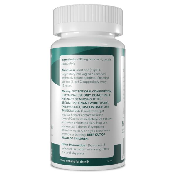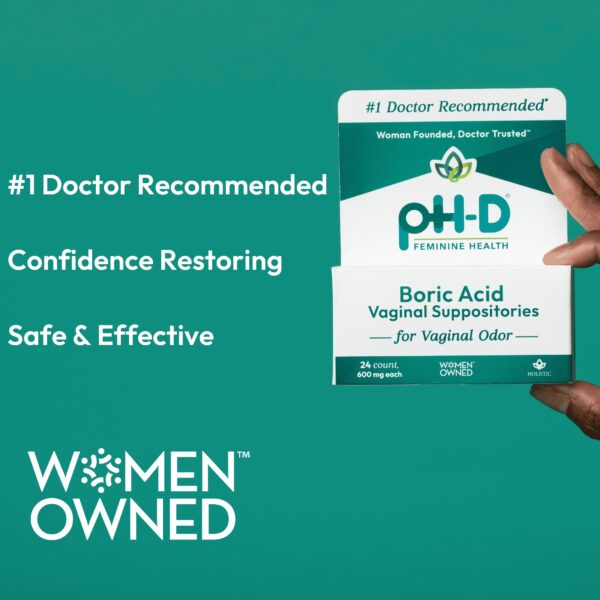 pH-D Boric Acid Vaginal Suppositories are the #1 Doctor recommended brand of boric acid suppositories. Boric acid, a natural compound found in sea water, can be used for vaginal odor. Our suppositories are the holistic, effective, and affordable solution to keep you feeling confident and comfortable. pH-D Feminine Health, Boric Acid Vaginal Suppositories, 72 ct. pH-D was created to offer holistic solutions for feminine care. For Teen and Adult use.