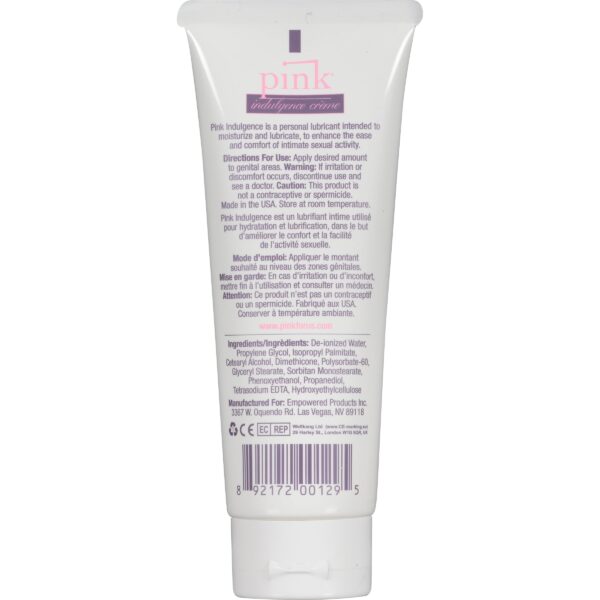 PINK Indulgence Cream – Longer Lasting Water Based Cream Personal Lubricant for Women – 3.3oz Tube