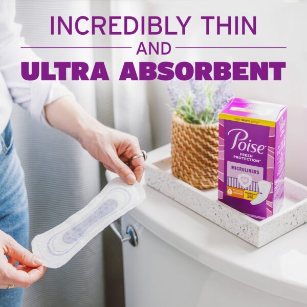 - ODOR CONTROL TECHNOLOGY: Each incontinence panty liner comes with Poise’s FreshSense system that helps neutralize bladder leak odors for up to 12 hours