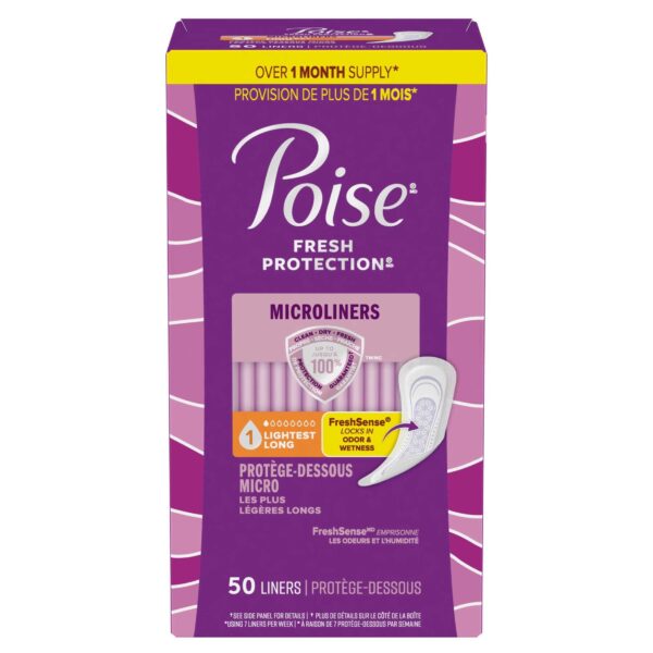 - POISE DAILY MICROLINERS: 50 incontinence and postpartum bladder leak panty liners, 1 Drop Lightest Absorbency, long length (50 pantiliners total)