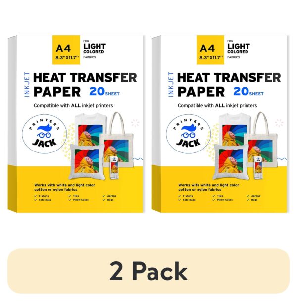 5 reviews for Printers Jack Iron on Heat Transfer Paper for White and Light Fabric, 1 Layer, 20 Sheets 8.3×11.7 inch, Ideal for Back to School Supplies