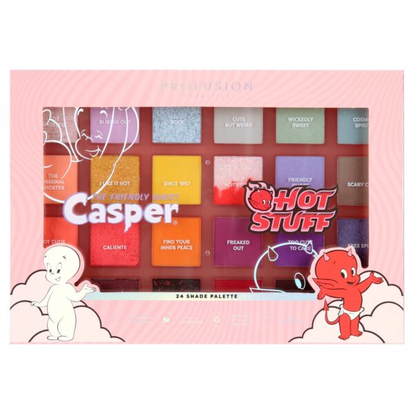 Step into a realm of limitless creativity where Profusion Cosmetics Casper’s playful spirit meets Hot Stuff’s sizzling energy! This dynamic duo showcases multi-finish eyeshadows that effortlessly blend ghostly pastels with fiery pops of color, allowing you to create captivating day-to-night looks with velvety soft mattes and dreamy pearlescent shimmers for the perfect balance. Whether you’re channeling Casper’s cheeky side for a flirty day look or cranking up the heat with Hot Stuff’s daring hues for a night out, this palette has all the shades you need. Infused with vitamin A and E, talc- and paraben-free, these buttery powders glide on like a dream, delivering stunning, long-lasting color payoff. Experience long-wearing, buildable, and blendable shades that empower you to unleash your inner artist and express your unique style!