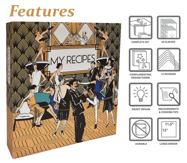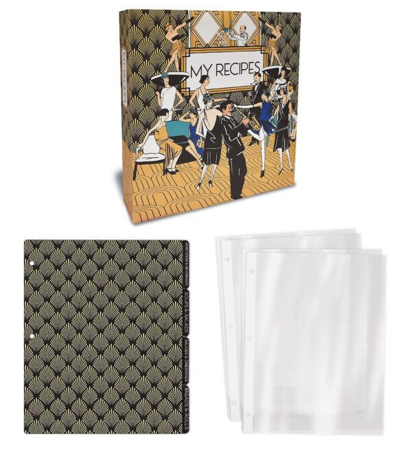 1 review for Recipe Binder, Full Page 3 Ring Standard Binder Organizer Set (with 50 Page Protectors & 12 Category Divider Tabs) by Better Kitchen Products, 11.5″ x 12″, Art Deco Roaring 20’s Design
