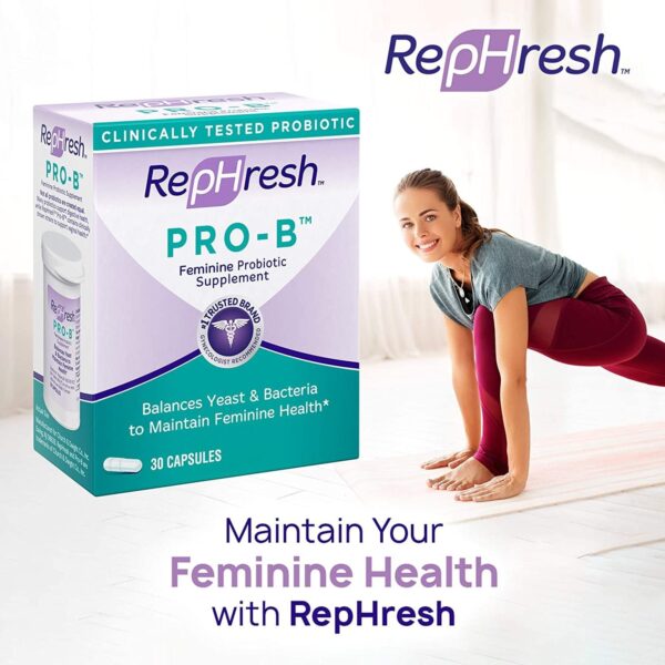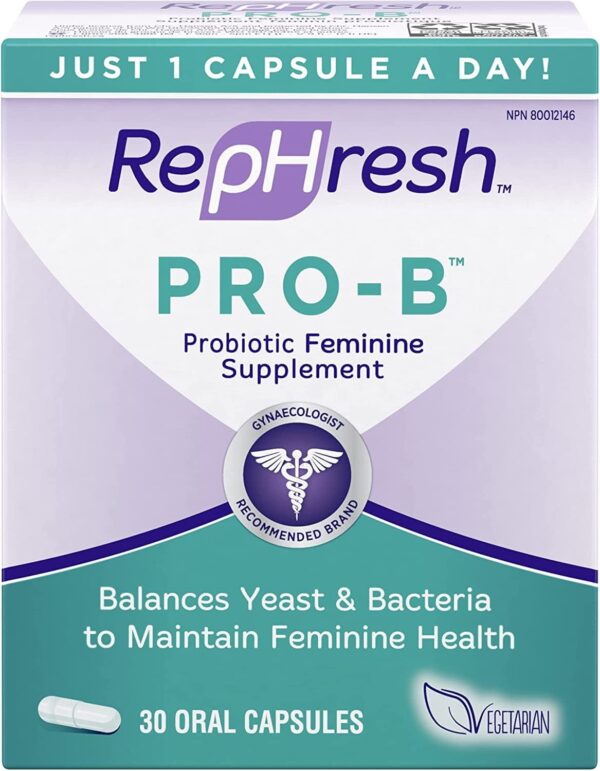 - RepHresh Pro-B Probiotic Feminine Supplement 30 Capsules for female, Clinically Tested feminine probiotic developed by doctors to maintain vaginal health. Its your body and you should feel comfortable in it! Many women have a tough time balancing their lives, let alone their vaginal health. RepHresh Pro-B Feminine Probiotic Supplement, is a once-daily oral supplement containing the strains of probiotic lactobacillus L. rhamnosus GR-1 and L. reuteri RC-14 clinically shown to promote vaginal health by balancing yeast and bacteria. Both strains work to help maintain the vaginal flora natur