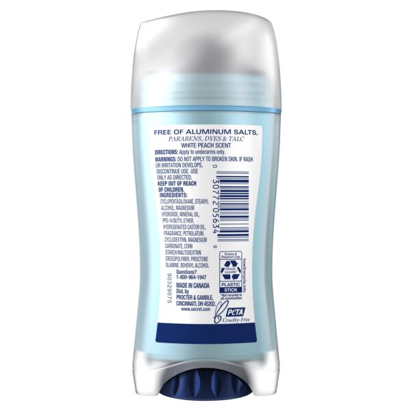 Secret Aluminum Free Women’s Deodorant Solid, White Peach, 2.4 oz