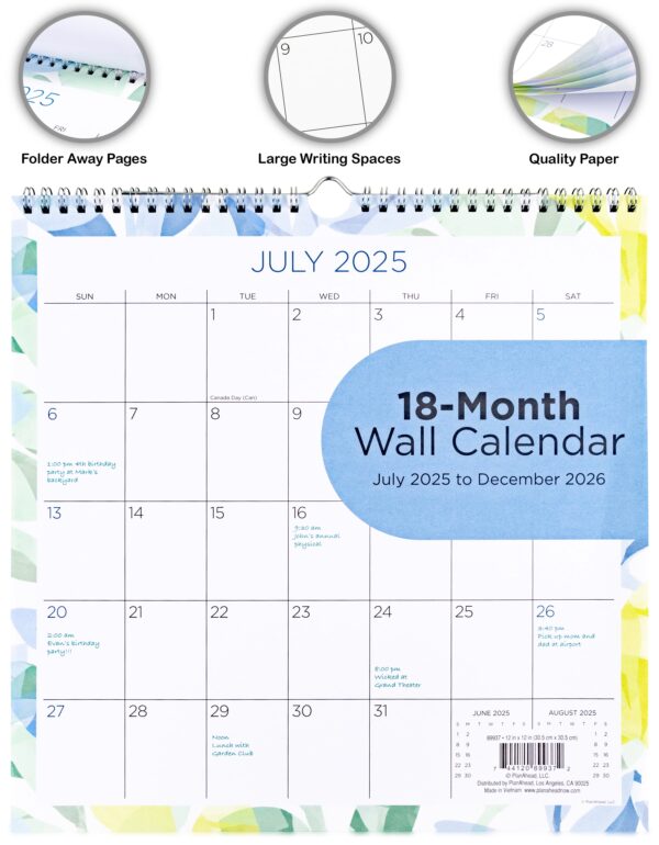 See it Bigger Large 12×12 Wall Calendar, 18 month, July 2025- December 2026
