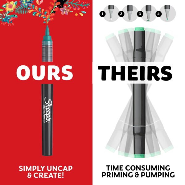Bring your artistic vision to life with Sharpie Creative Markers! These acrylic markers feature stunning paint-like ink that glides across the page with the control of a marker. The water-based ink won’t bleed through paper, so your work stays clean. The bright color adult markers create vibrant marks on light and dark surfaces and boldly mark on paper, metal, wood, ceramic, glass, rock, and canvas. The colors beautifully layer to add dimension to your work. What’s more, there’s no need to prime these brush tip markers—simply uncap and go!