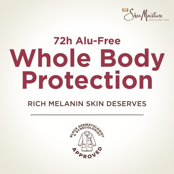 - 72H ODOR CONTROL: SheaMoisture Aluminum Free Whole Body deodorant stick is clinically proven to provide 72-hours of odor control for the whole body.