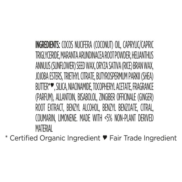 - CLEAN INGREDIENTS: Our whole body deodorant is made with Fair Trade Shea Butter and plant-based moisturizers, and contains Certified Organic Ingredients.