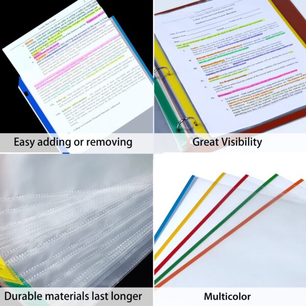 | Features | Easy to View,Fits standard paper size (8.5 x 11 inches),Compatible with 3-ring binders |