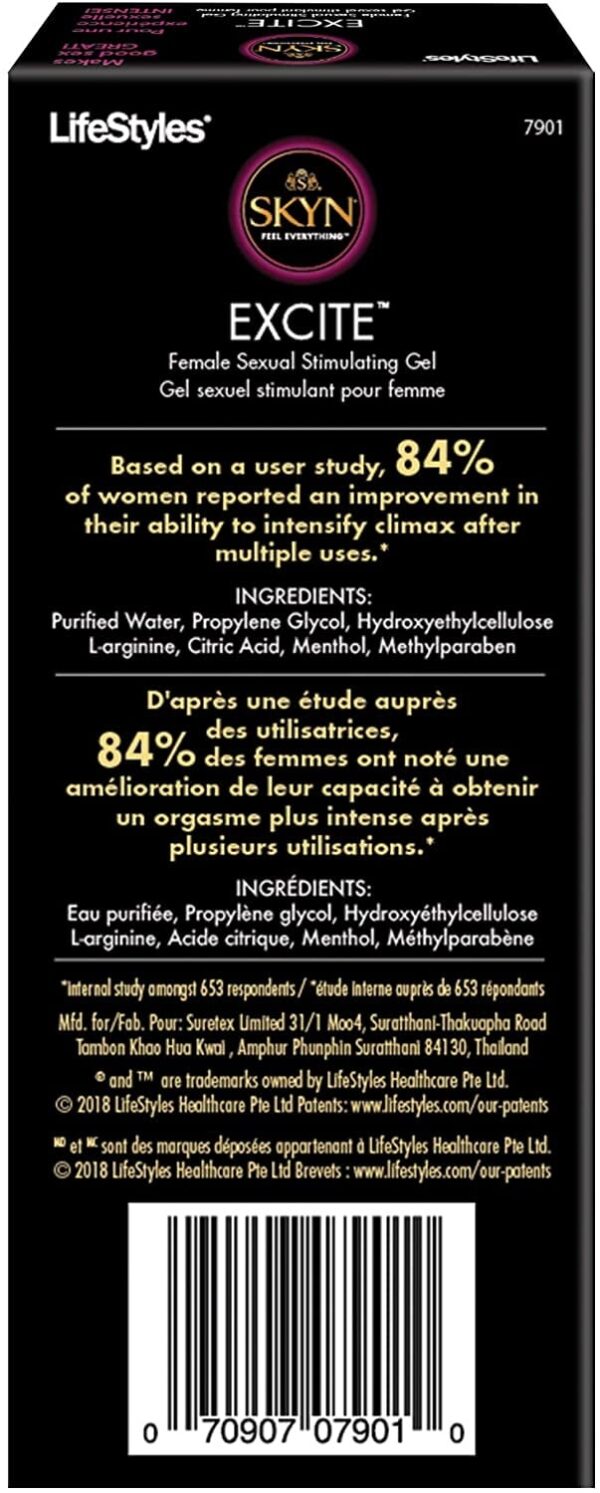 SKYN Excite Sensual Stimulating Massaging Gel has been designed and tested by women to maximize the female sexual experience and drive. This gel combines high quality ingredients which, when used with the suggested massage technique, offers a more exciting sexual experience. It provides a pleasurable tingling and warming sensation when massaged gently onto the clitoris. Receive an orgasm enhancing experience with the SYKN Excite Massaging Gel. SKYN Excite is condom compatible.