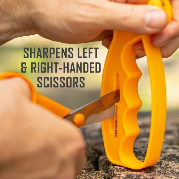 - SCISSORS SHARPENER – The patented scissors sharpener is built into the handle & can be used on right & left-handed scissors. The ceramic rod conforms to the angle of the scissors for proper sharpening.