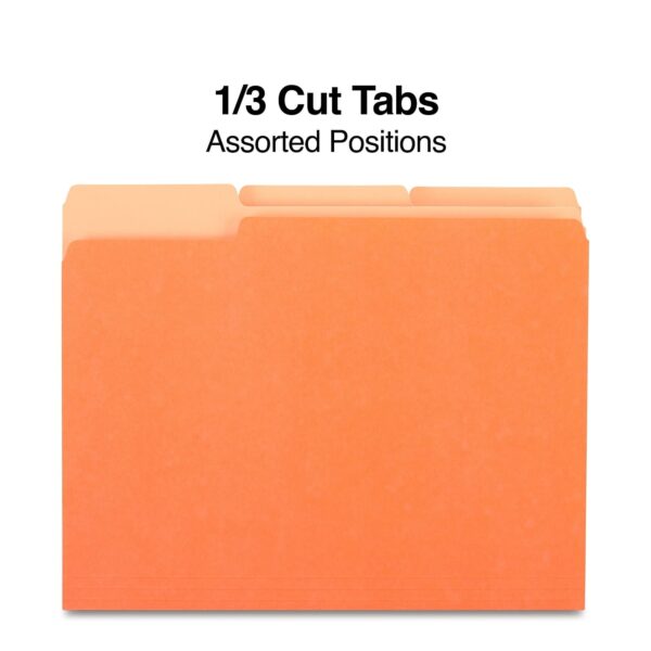 - Three 1/3-cut assorted-position top tabs offer ample space for labeling to keep your files organized.