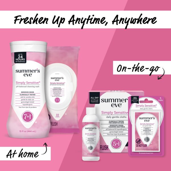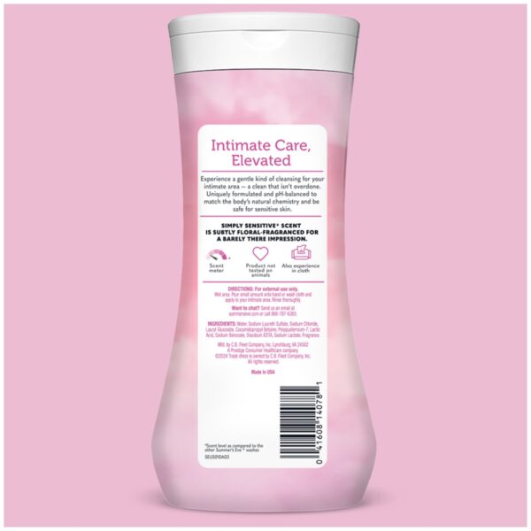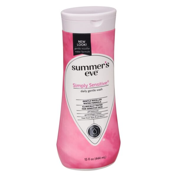 - Summer’s Eve Simply Sensitive Daily Gentle Feminine Wash removes odor-causing bacteria