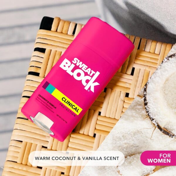 SweatBlock Deodorant for Women – Clinical Antiperspirant, 48-Hour Sweat & Odor Protection, Coconut & Vanilla