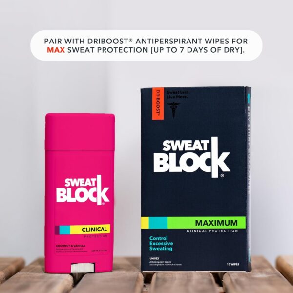 - STOP SWEAT & ODOR | Use SweatBlock Deodorant for women on its own for moderate sweat & odor control. For excessive sweat & odor, use with SweatBlock DRIBOOST wipes or roll-on. DRIBOOST products sold seperately.