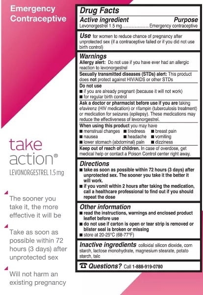 - Take Action Emergency Contraceptive, Levonorgestrel 1.5Mg, Generic: