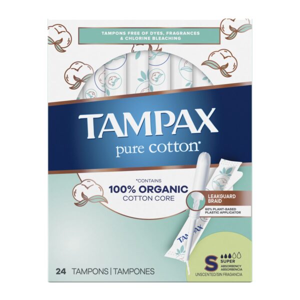 - Tampax Pure Cotton Tampons, Unscented, Super Absorbency, 24 Ct