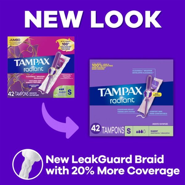 - Tampax Radiant Tampons with LeakGuard Braid, Supber Absorbency, 42 Ct